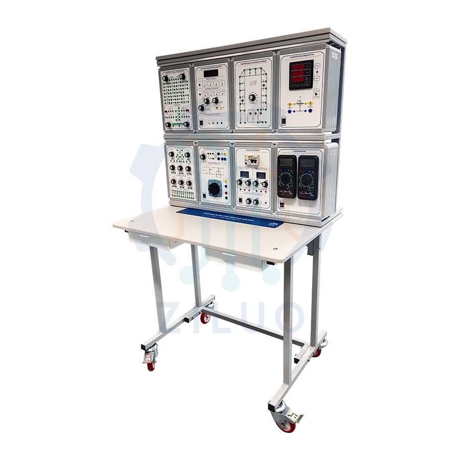 Комплект учебного лабораторного оборудования «Электричество и магнетизм» выполнен в настольном исполнении: базовый блок и сменные модули располагаются на столе. Конструкция базового блока и сменных модулей обеспечивает возможность подключения внешних измерительных приборов и дополнительного оборудования.
