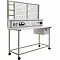 Над рабочей поверхностью расположен встроенный модуль электрического питания стенда и рама из алюминиевого профиля с установленной на ней перфорированной монтажной панелью.