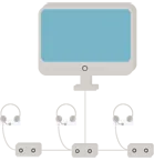 С помощью одного аудиокоммутатора в лингафонном классе можно охватить аудио-связью до 16 рабочих мест и создать 8 произвольных аудио-групп. В одну аудио-группу может входить от 2 до 16 рабочих мест. Аудиокоммутатор SX108 AUDIO подключается к компьютеру преподавателя с помощью USB-кабеля или кабеля RS-232.