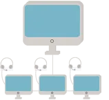 С помощью одного аудиокоммутатора можно охватить аудио-связью до 16 рабочих мест и создать 8 произвольных аудио-групп. В одну аудио-группу может входить от 2 до 16 компьютеров в любой комбинации. Количество рабочих мест охваченных аудиосвязью можно увеличить до 226 за счёт использования дополнительных аудиокоммутаторов. Управление аудиокоммутатором осуществляется по кабелю (интерфейс RS-232 или USB), который подключается к компьютеру преподавателя.