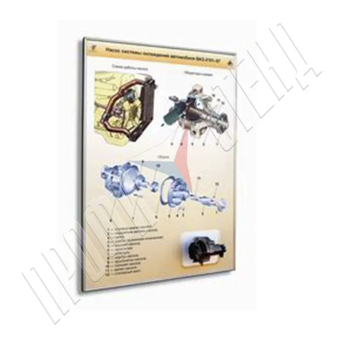 С изображением конструкции и схемы работы, насос - натуральный образец в разрезе.
