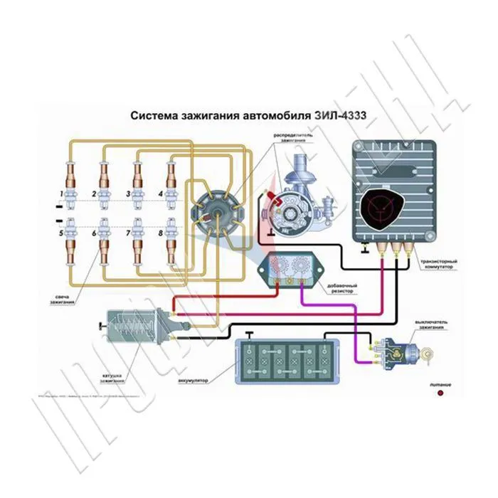 пленка ПВХ с полноцветным изображением разрешением не менее 1400 dpi с изображением системы зажигания двигателя ЗИЛ; комплект подвесов;