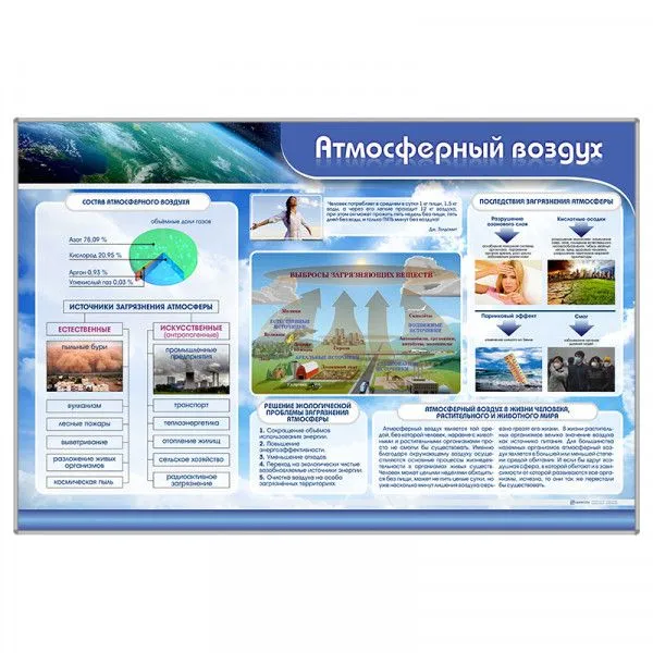 Учебный стенд представляет собой полноцветную информационную панель с информацией об атмосферном воздухе как объекте экологических отношений.