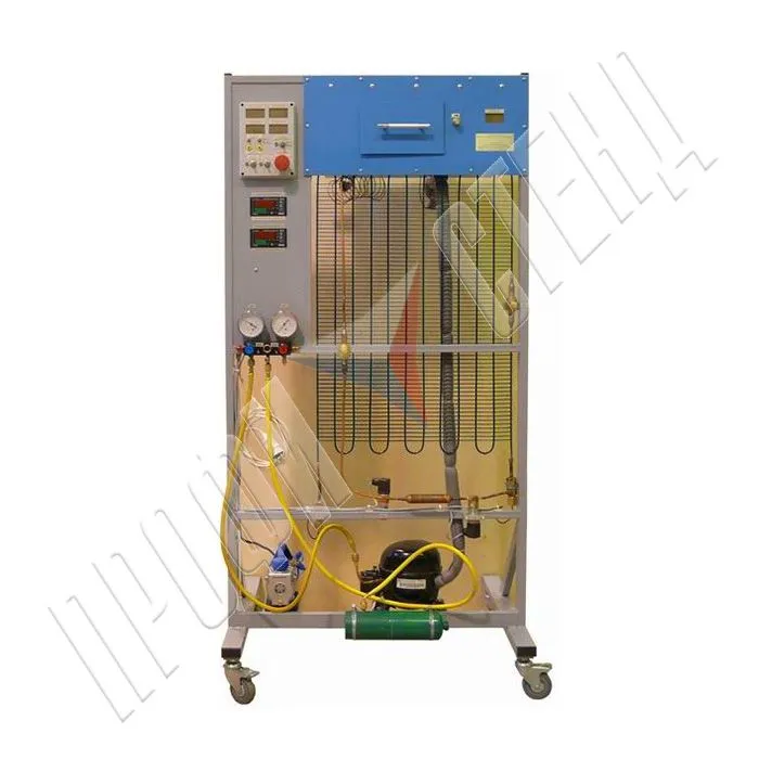 Стенд позволяет определять температуру и давление на входе и выходе агрегатов системы бытового холодильника, температуру в морозильной камере; вводить и обнаруживать неисправности термостата, конденсатора и капилляра бытового холодильника.