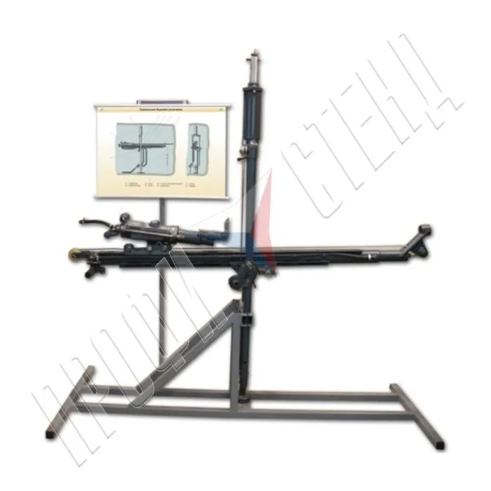 Стенд-тренажер представляет собой переносную буровую установку, подготовленную для разборки/сборки, на металлическом основании с цветным плакатом иллюстрирующем устройство и принцип действия переносной буровой установки.