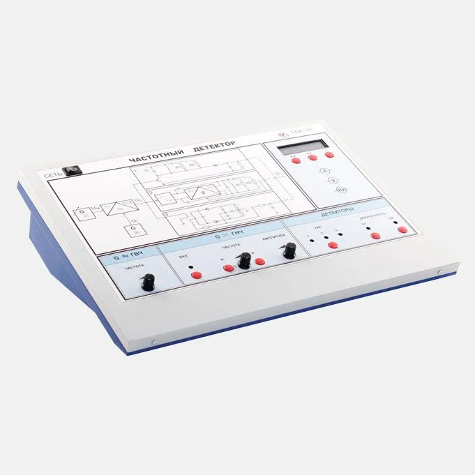 Установка "Частотный детектор" УОС 03 позволяет проводить исследования частотного детектора на основе расстроенного контура и амплитудного детектора, фазового детектора с одиночным контуром и дробно-частотного детектора.