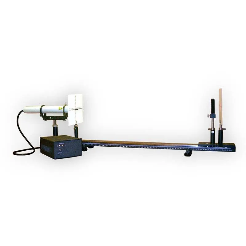 Установка состоит из источника белого света с регулируемым источником питания, сетки, рассеивающей и собирательной линз и экрана с миллиметровой шкалой в виде креста, устанавливаемых в рейтерах на оптической скамье. На боковой поверхности скамьи нанесена миллиметровая шкала.
