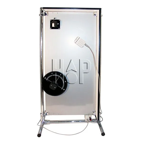 Узел крепления источника поляризованного когерентного излучения обеспечивает изменение направления луча по двум угловым координатам, и вращение источника вокруг продольной оси на 90⁰. Ось поворотного диска с образцом соединена с цифровым датчиком угла поворота, что позволяет измерить угол падения излучения на поверхность образца. Интенсивность излучения, отраженного от одной грани образца, измеряется цифровым датчиком света.