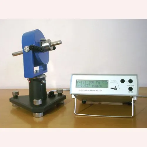 Электропитание двигателя, а также измерение и индикация скорости вращения маховика, и скорости прецессии осуществляется с помощью блока электронного (входит в состав установки).